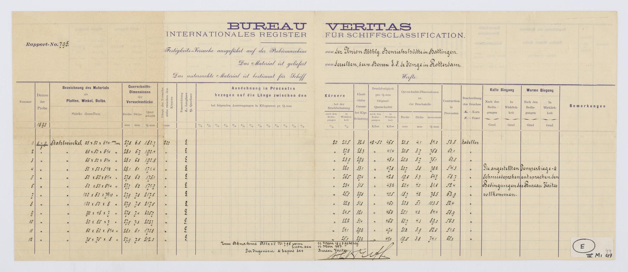 Beproevingscertificaat Veritas van 709 stuks hoeklijn