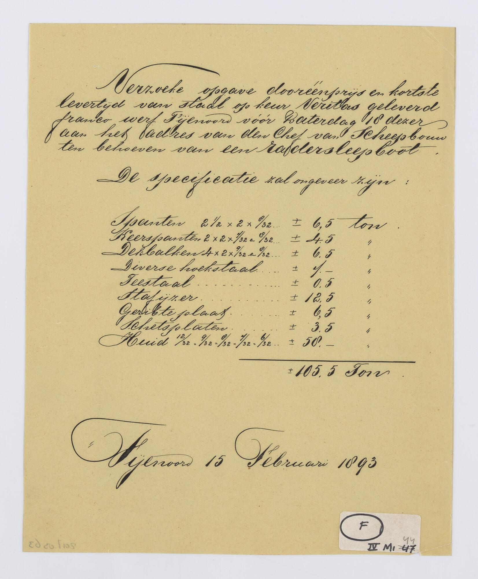 Verzoek van Fijenoord om een eenheidsprijs voor 105,...