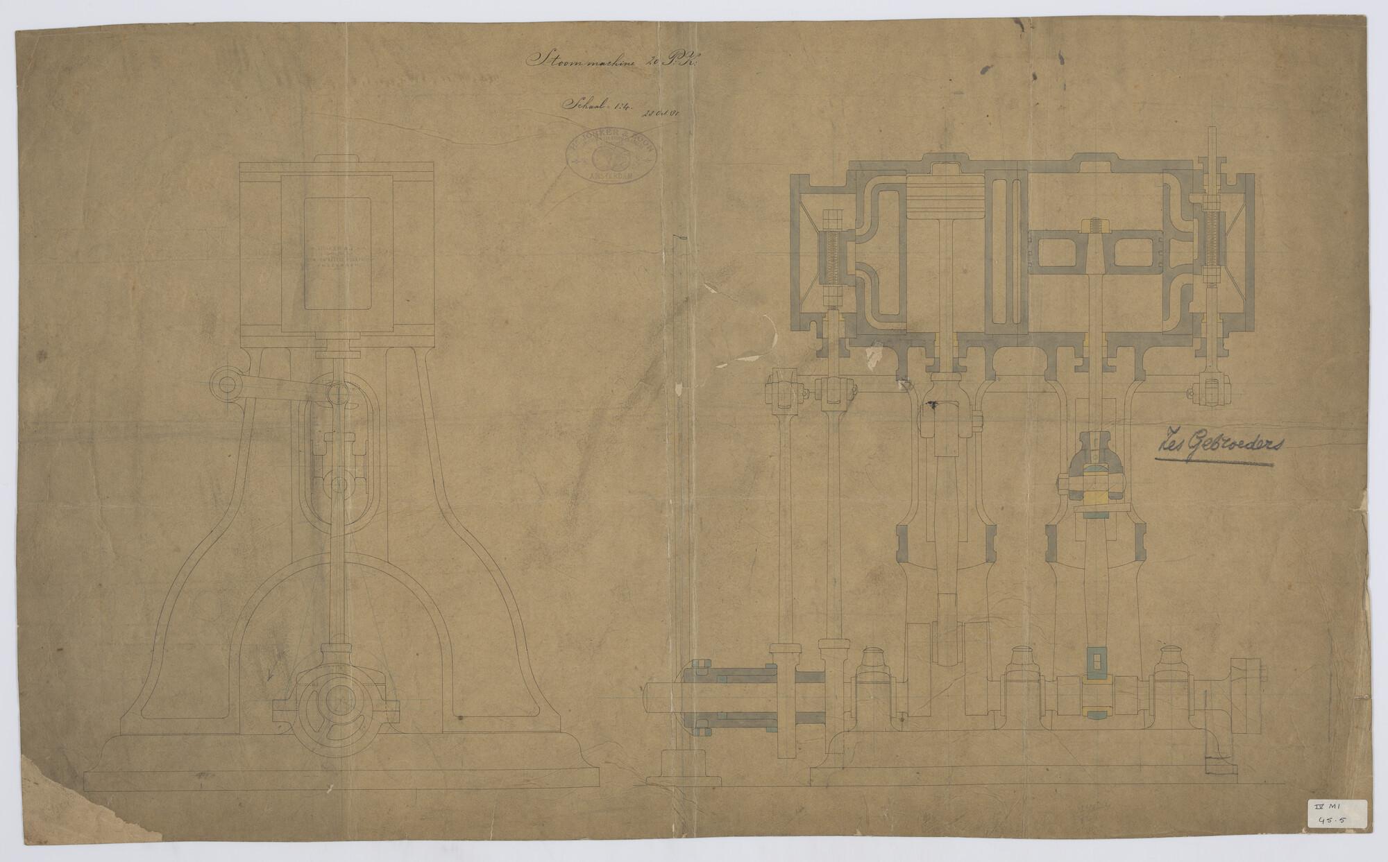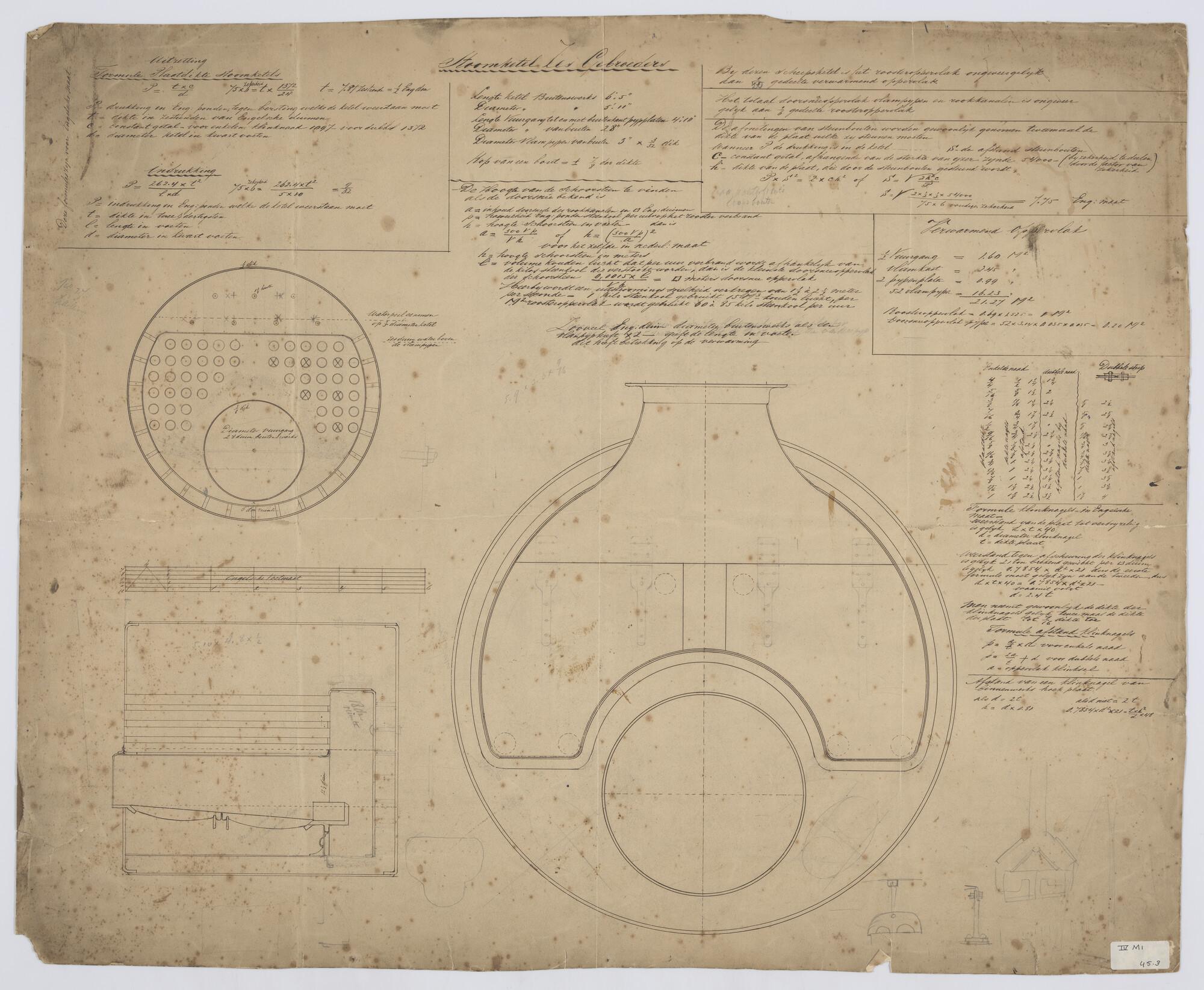 Ketel verticale langsdoorsnede en vooraanzicht, (Sch...