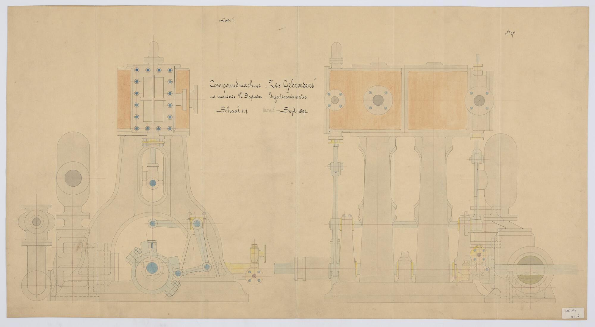 Zijaanzicht, verticale langsdoorsnede, dwarsdoorsned...