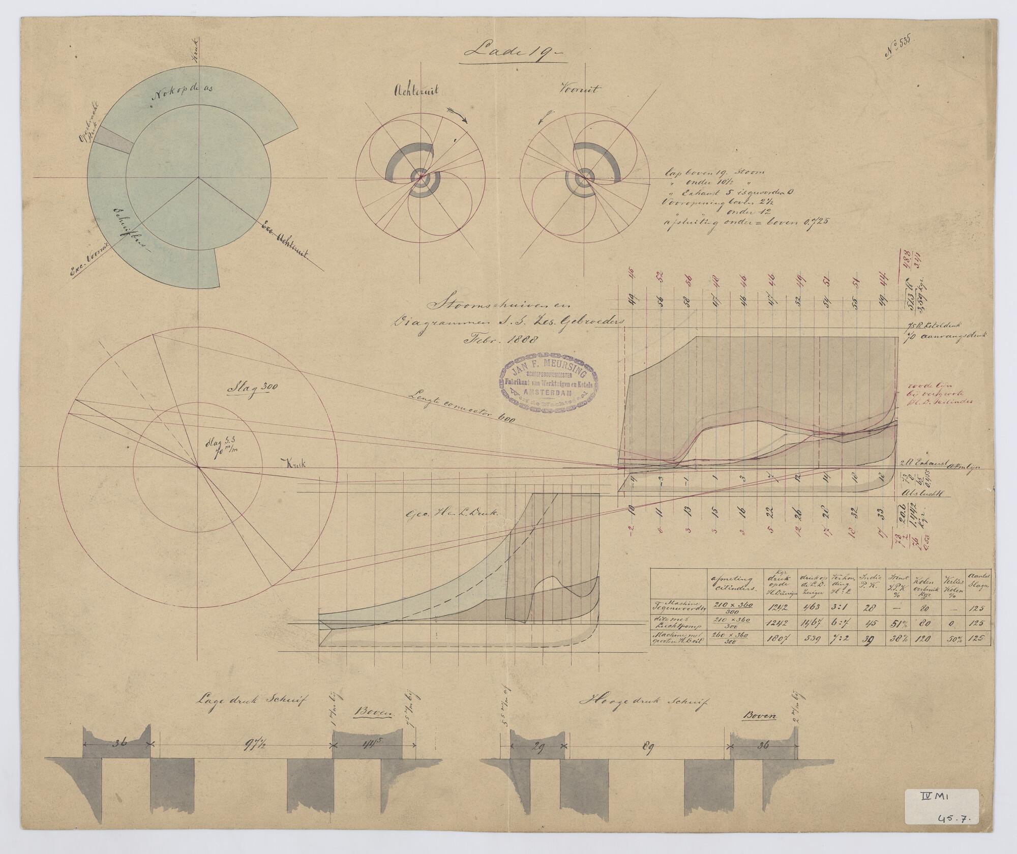 Stoomschuiven, diagrammen 1888. Sleepboot 'Zes Gebro...