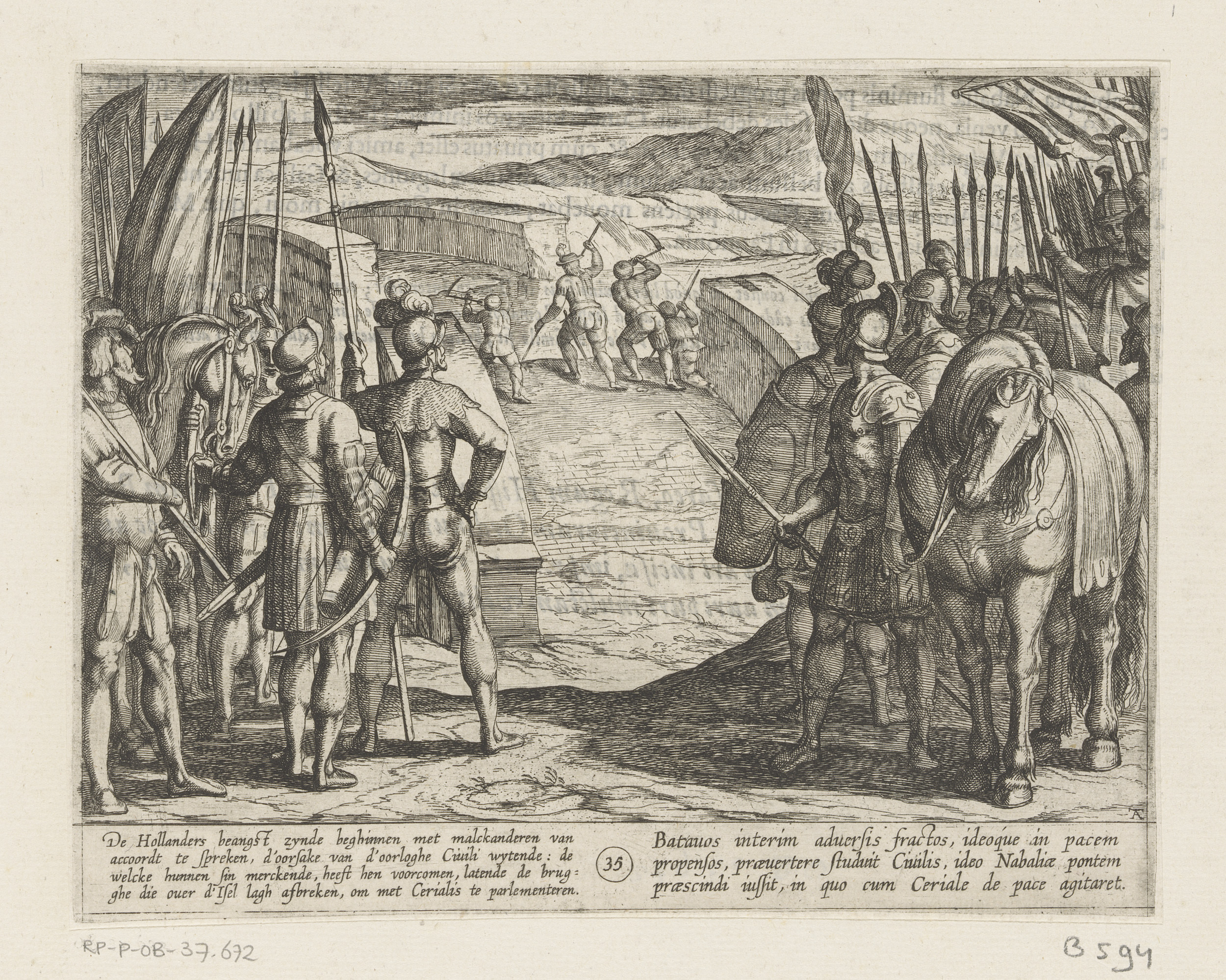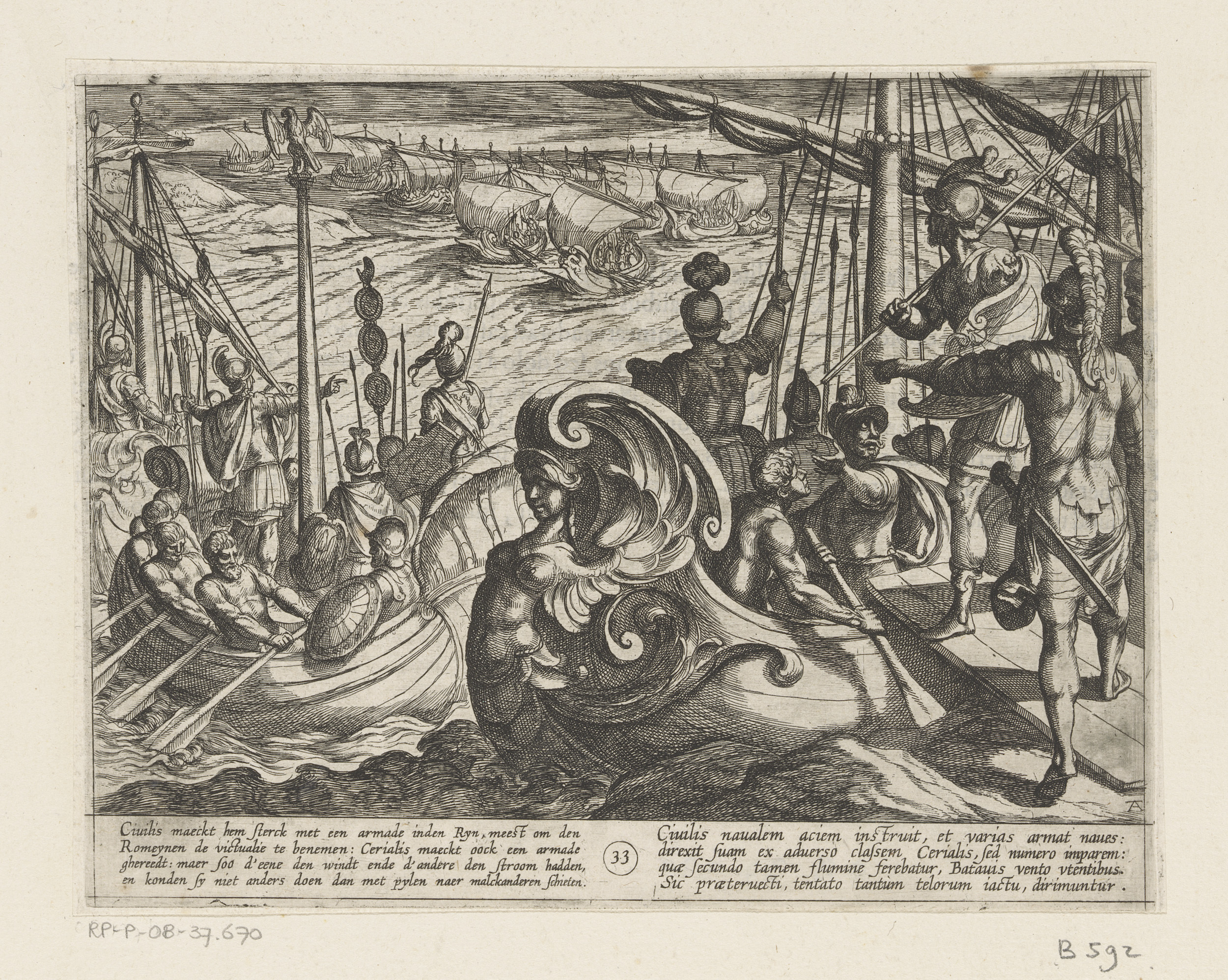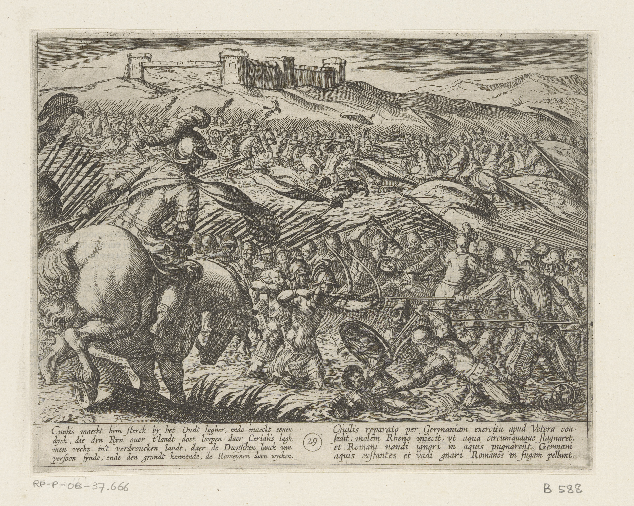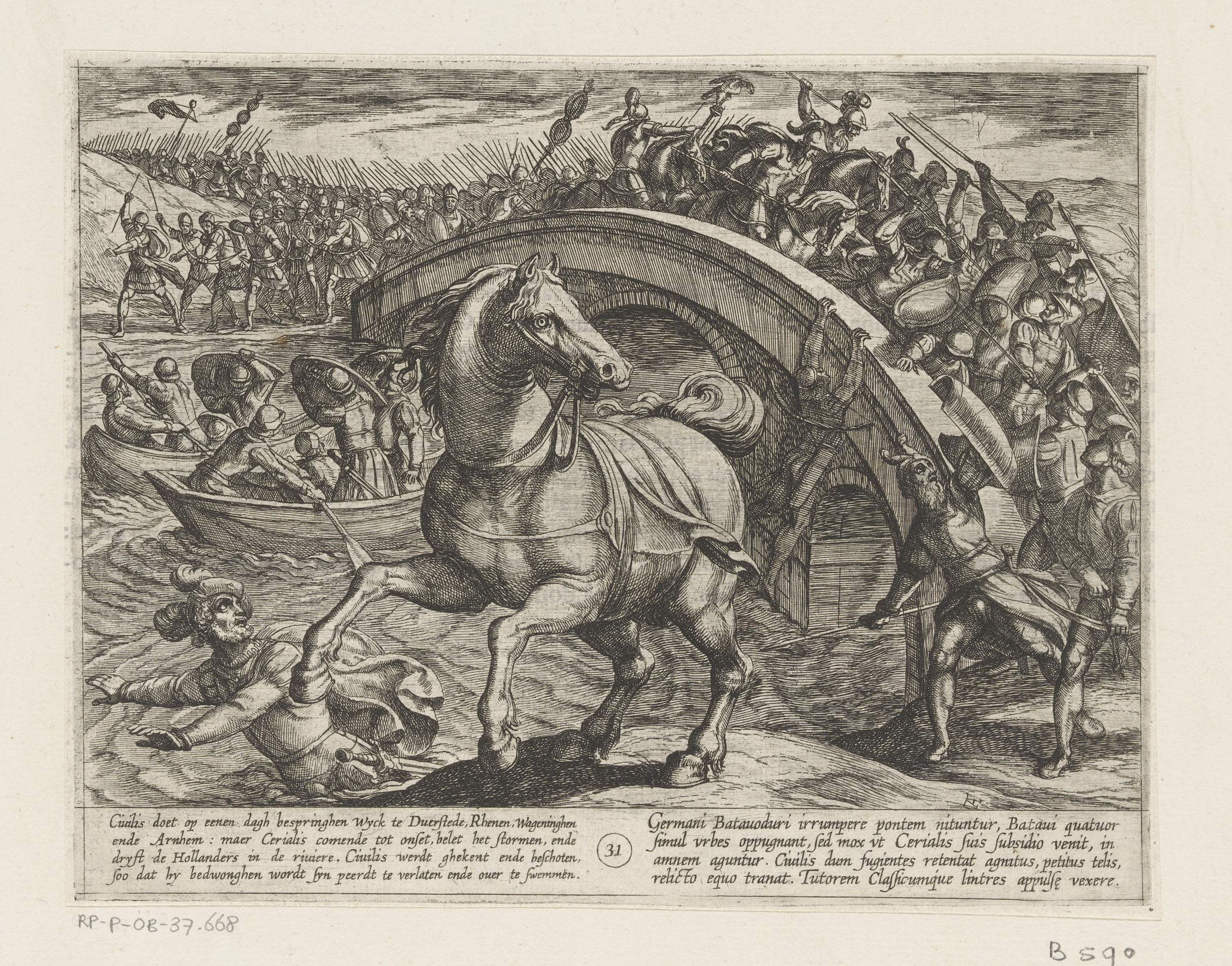 Julius Civilis gedwongen af te stijgen en zwemmend d...