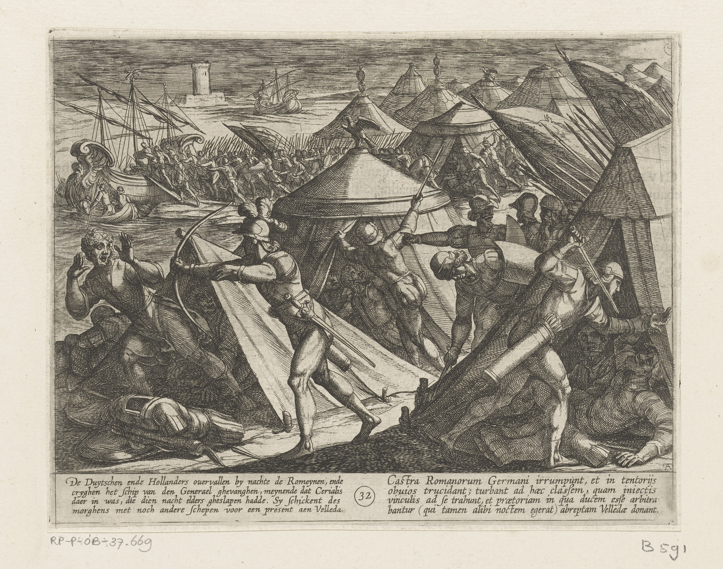 Nederlanders en Duitsers vallen het Romeinse kamp aa...