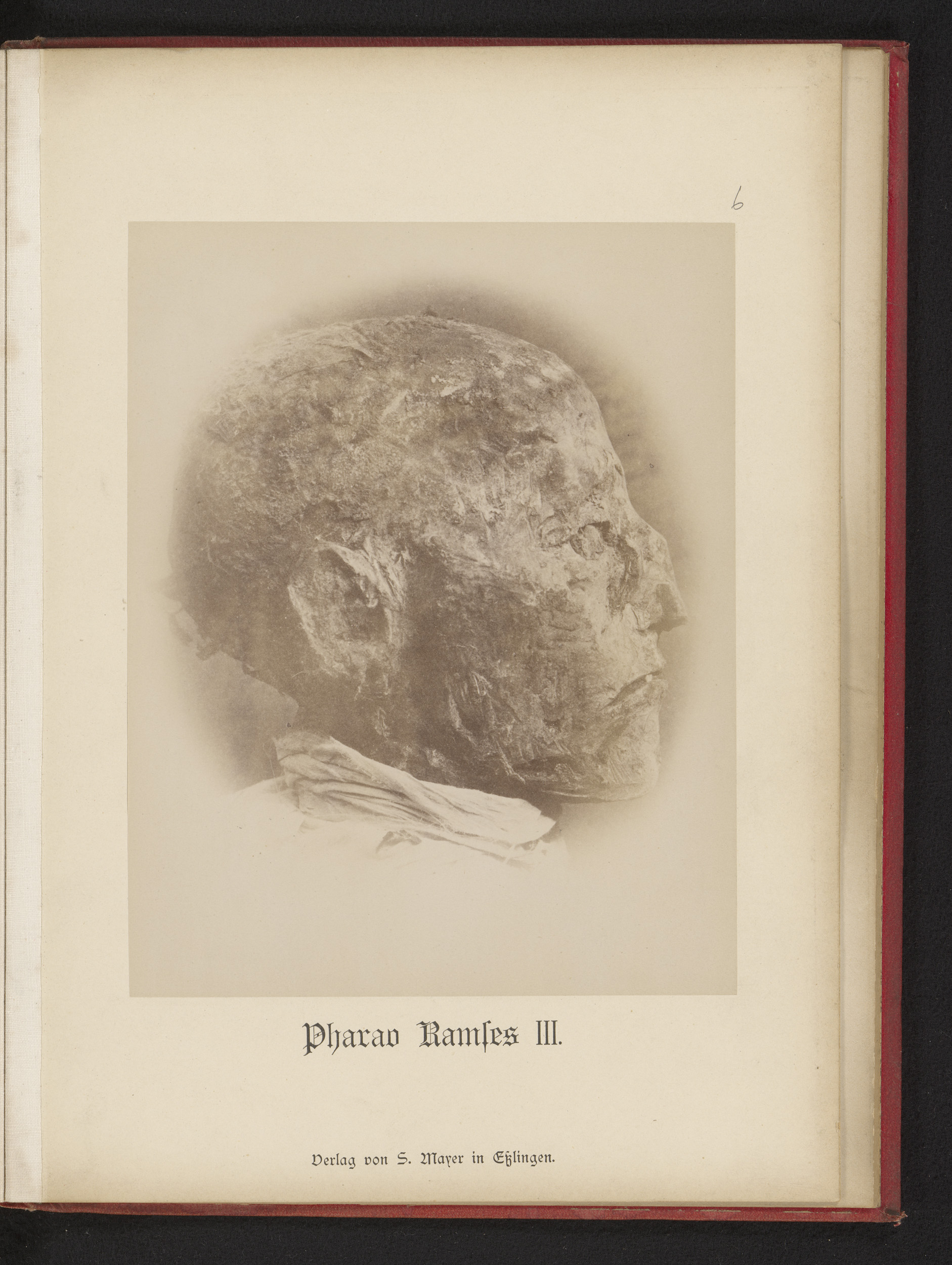 Hoofd van de mummie van farao Ramses III, gezien van...