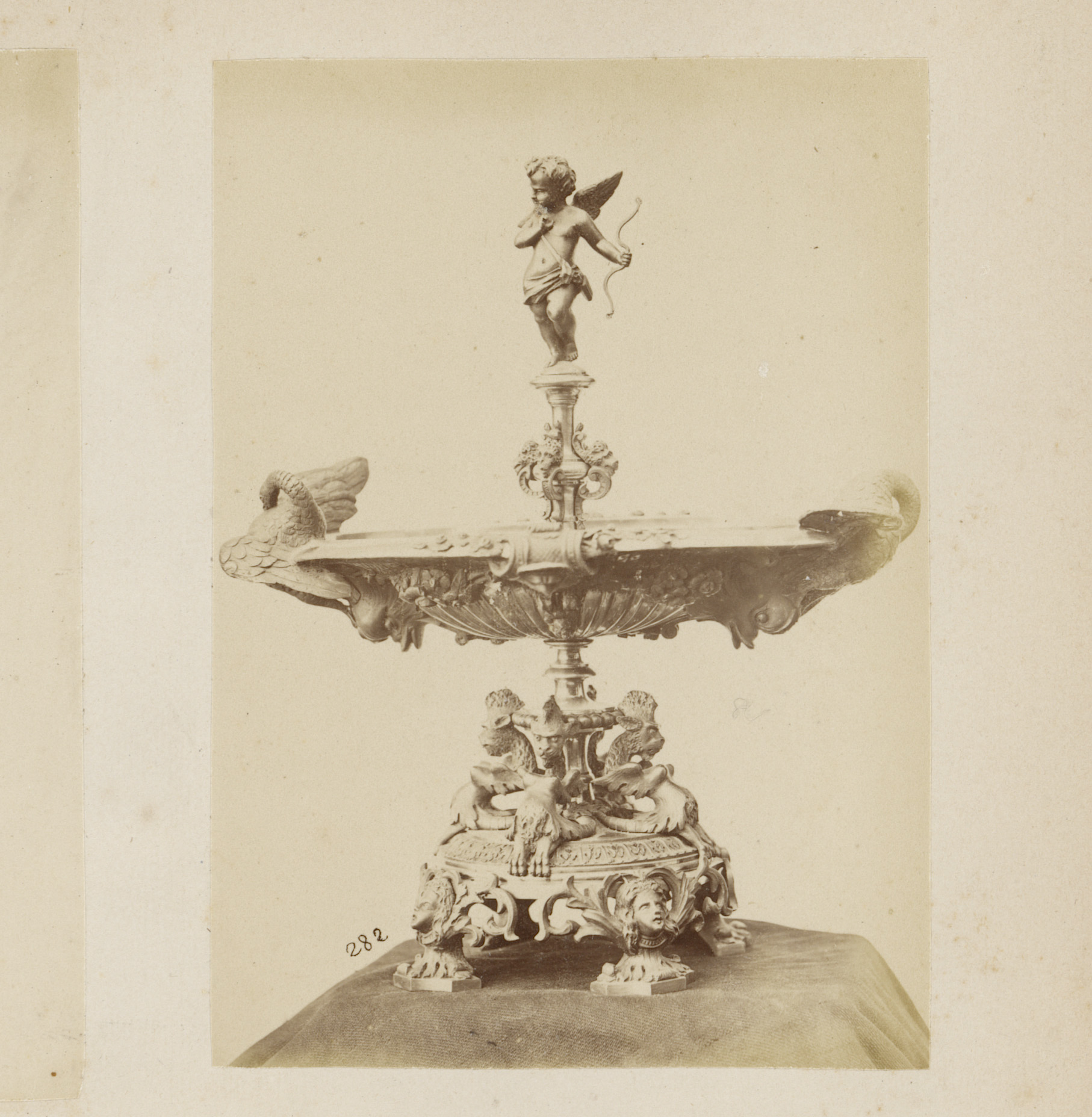 Metalen kandelaars in de vorm van griffioenen en ink...