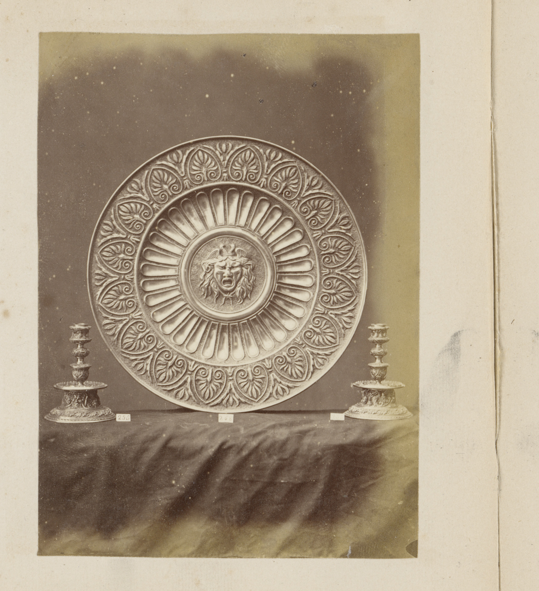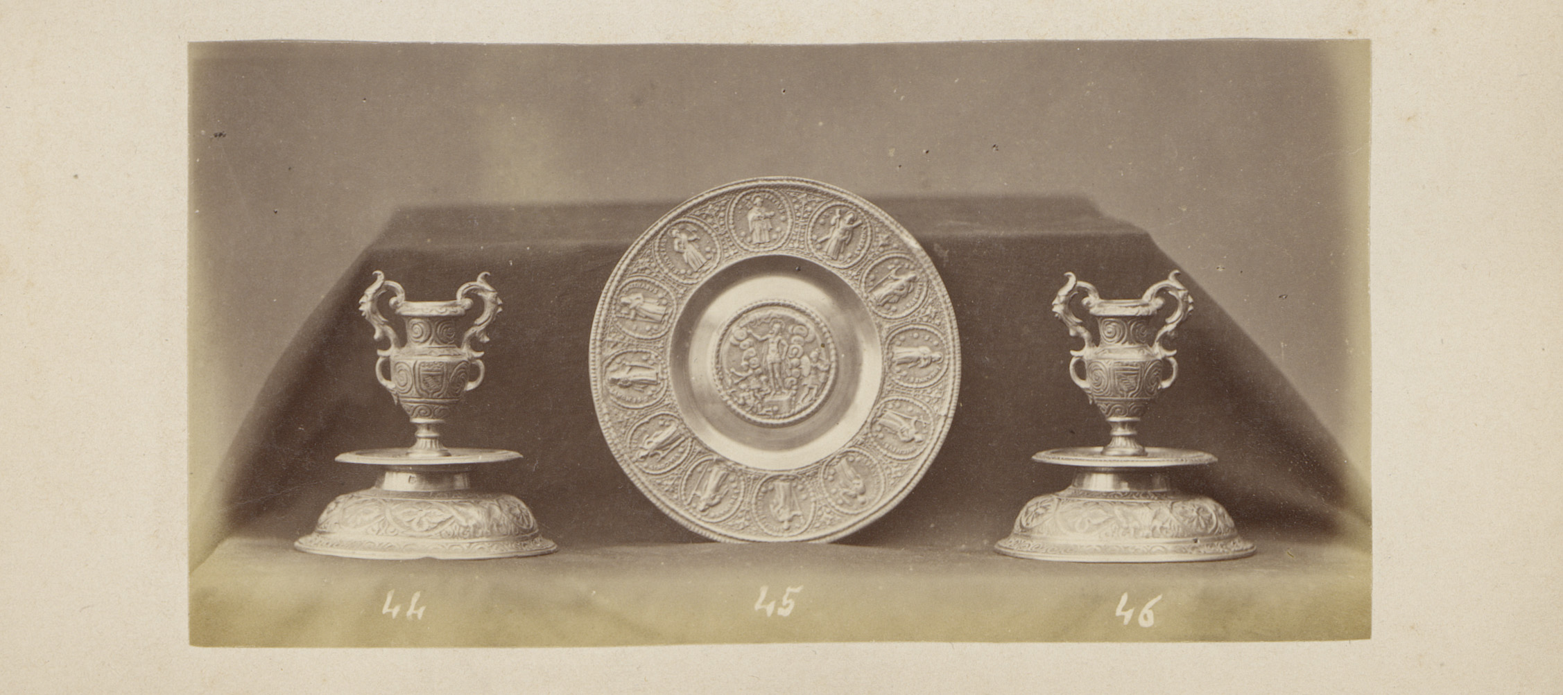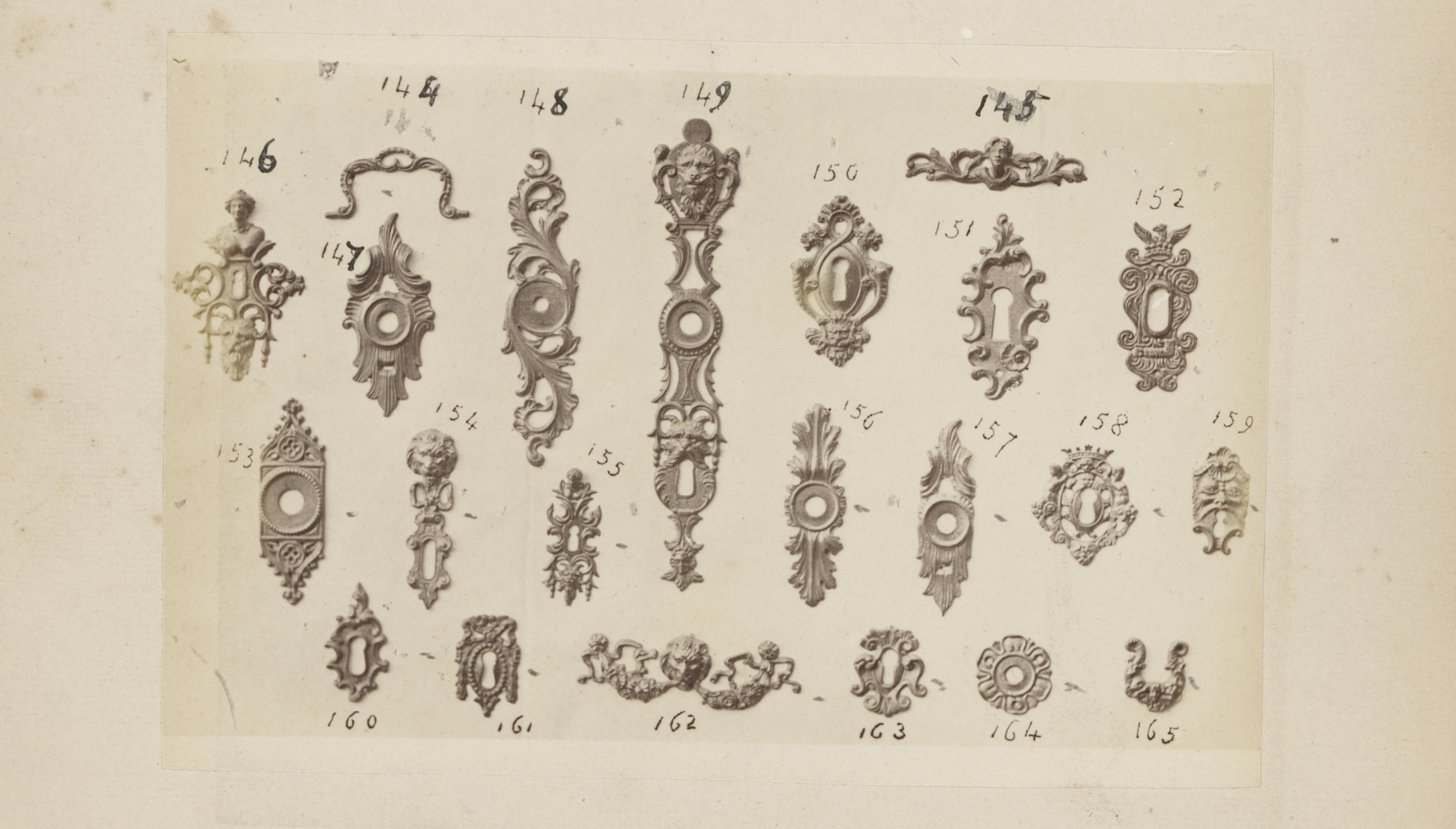 Metalen ornamenten in de vorm van koppen en zeepaarden