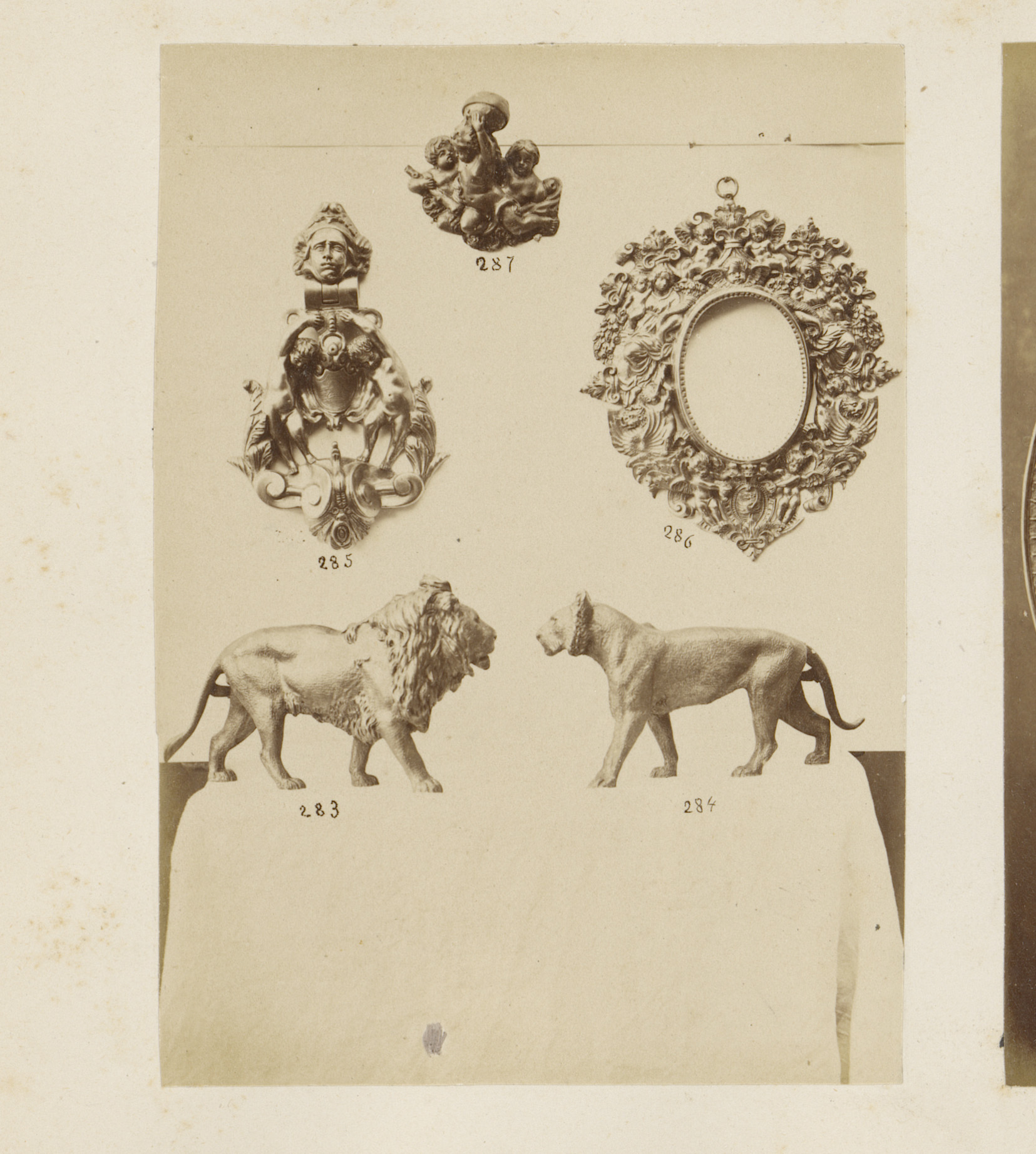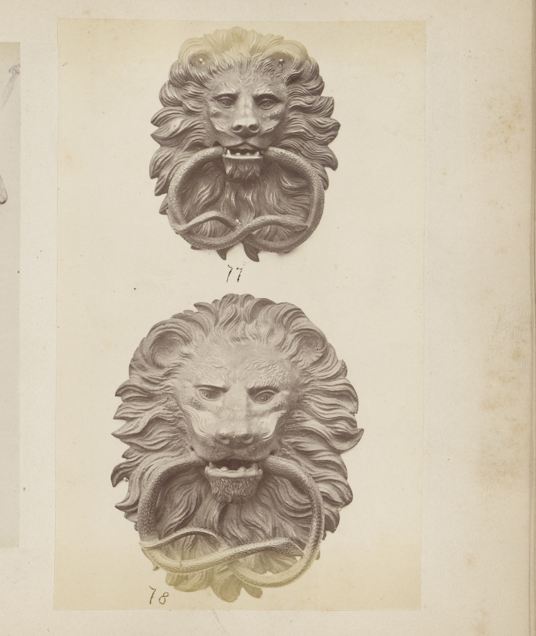 Metalen ornamenten in de vorm van leeuwen- en mensen...
