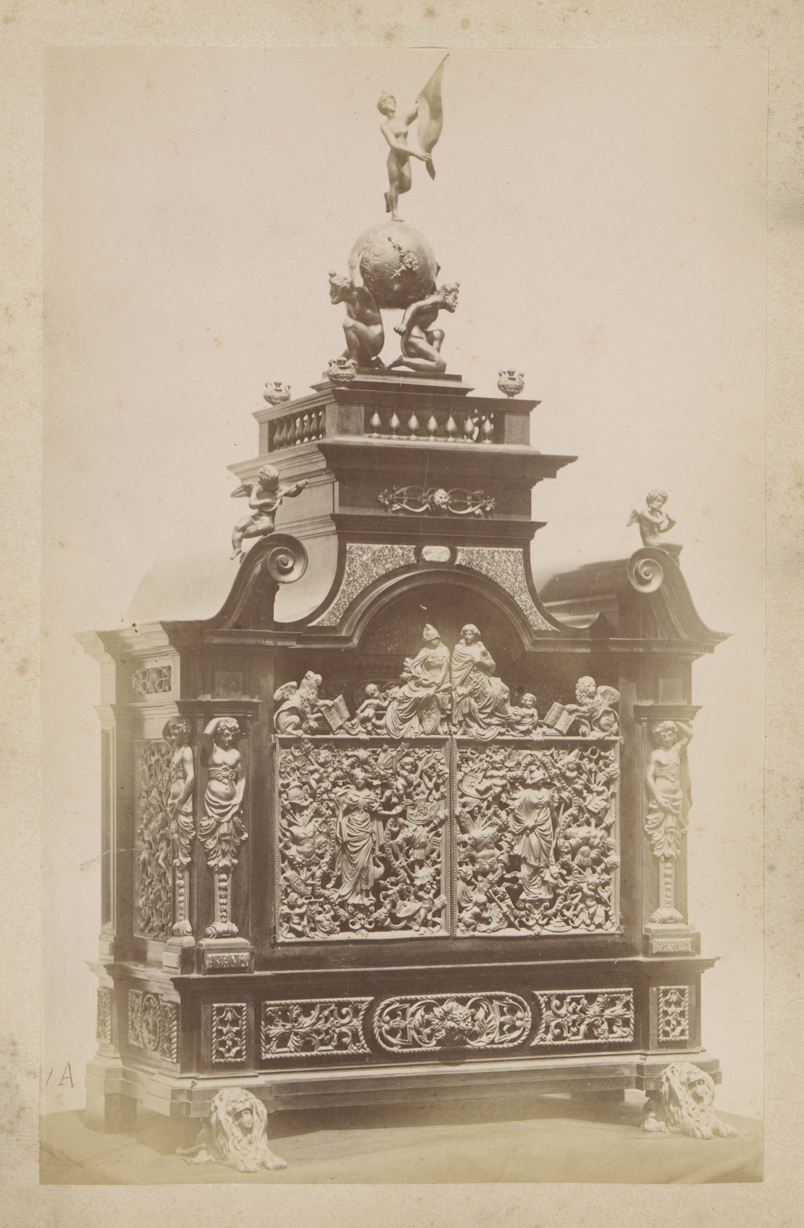 Ebbenhouten kast met edelstenen, een sculptuur en ee...