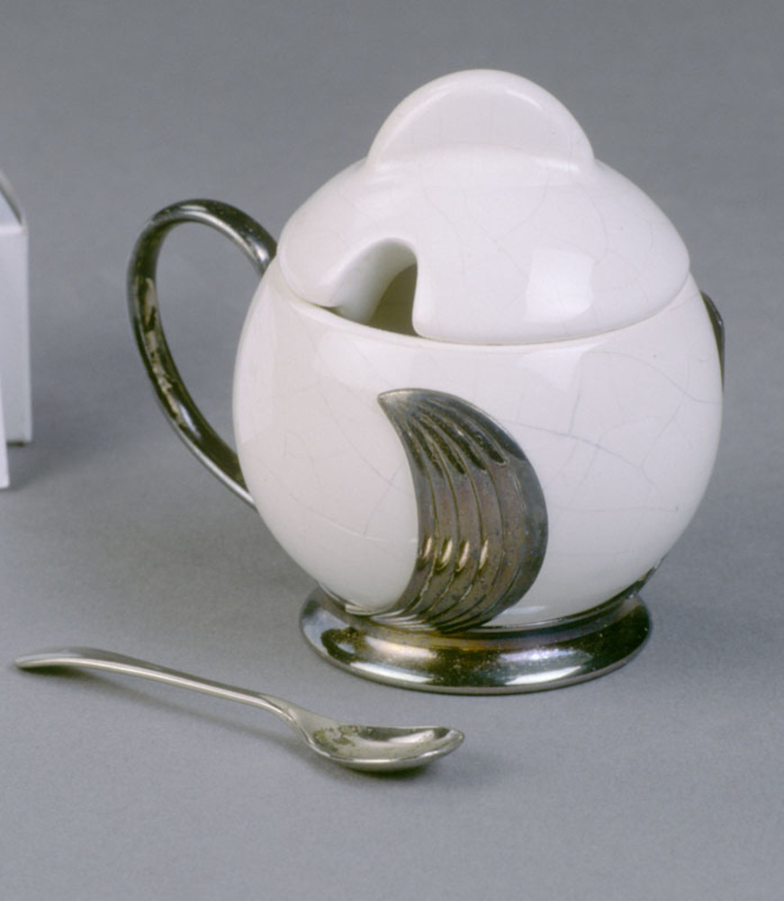 Art Deco mosterdpot van keramiek met chroom lepel