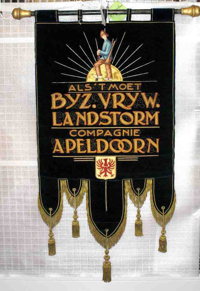 blauw fluwelen vaandel met keperkatoen van het Lands...