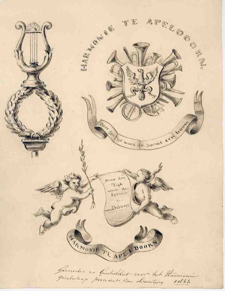 Diverse ontwerpen t.b.v. vaandel voor Harmonie te Ap...