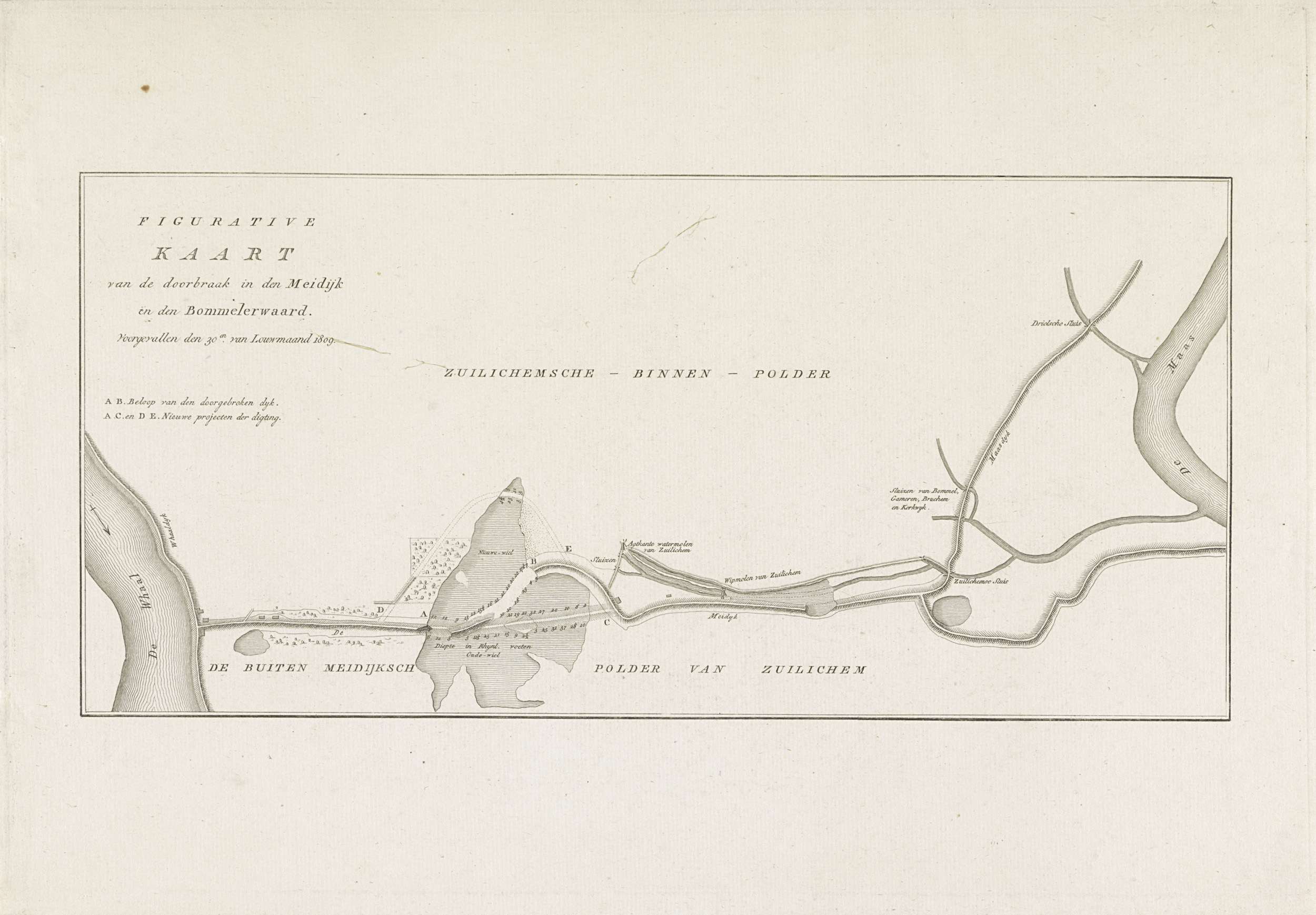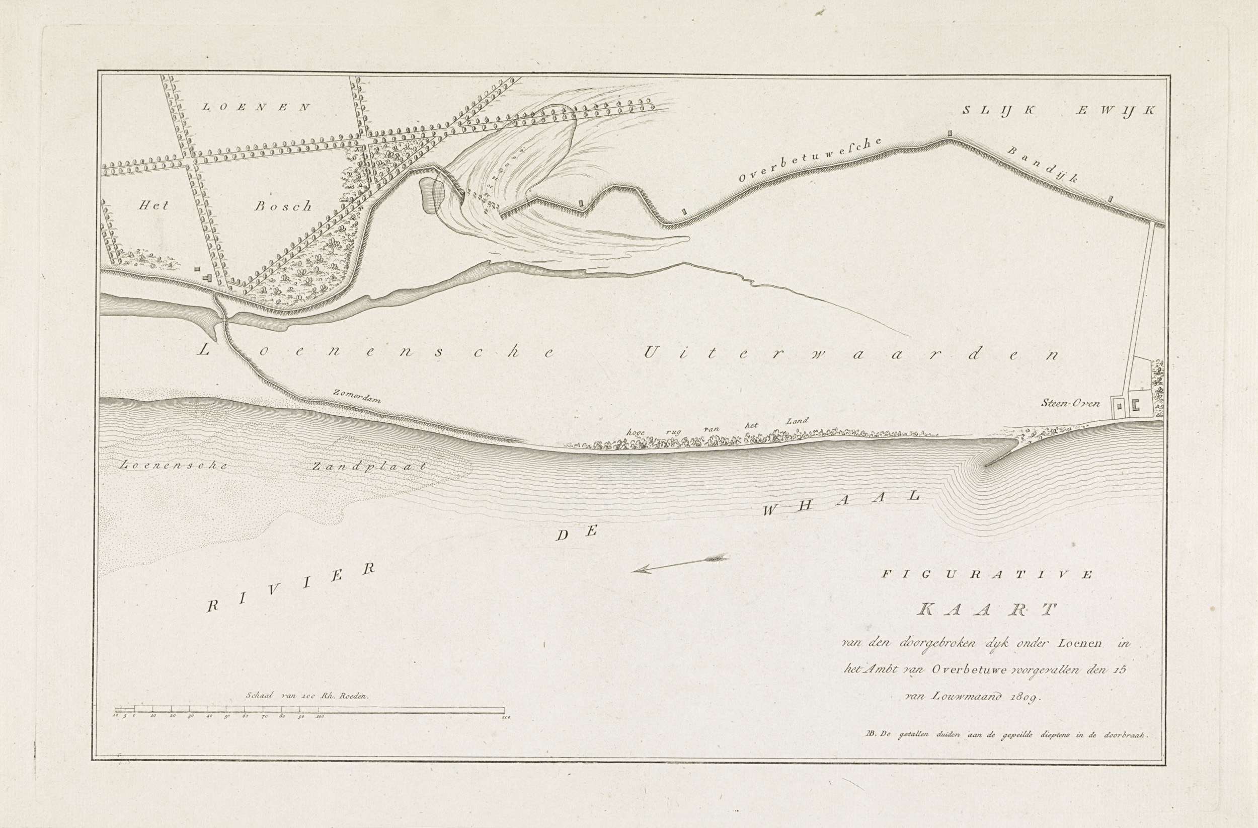 Kaart van dijkdoorbraak te Loo, 1809