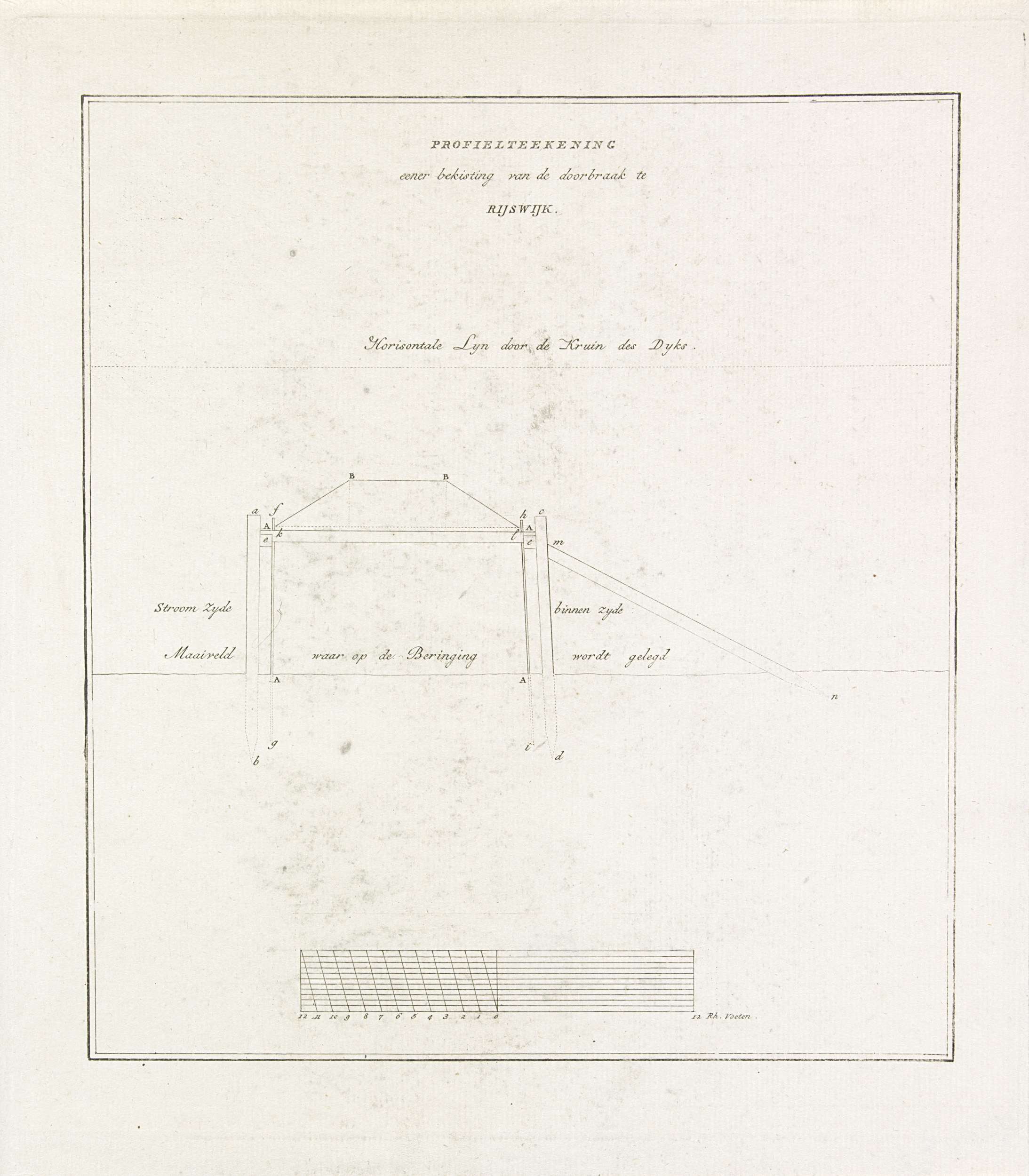Technische tekening van dijkbekisting, 1809