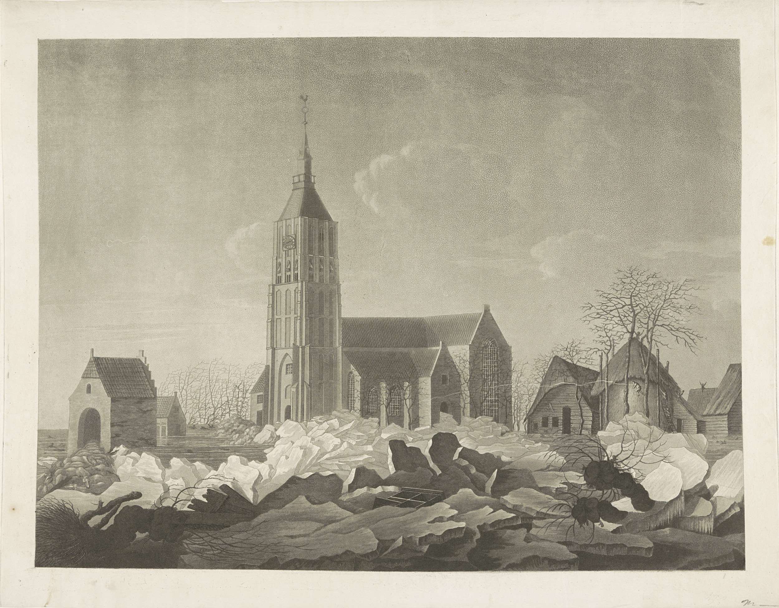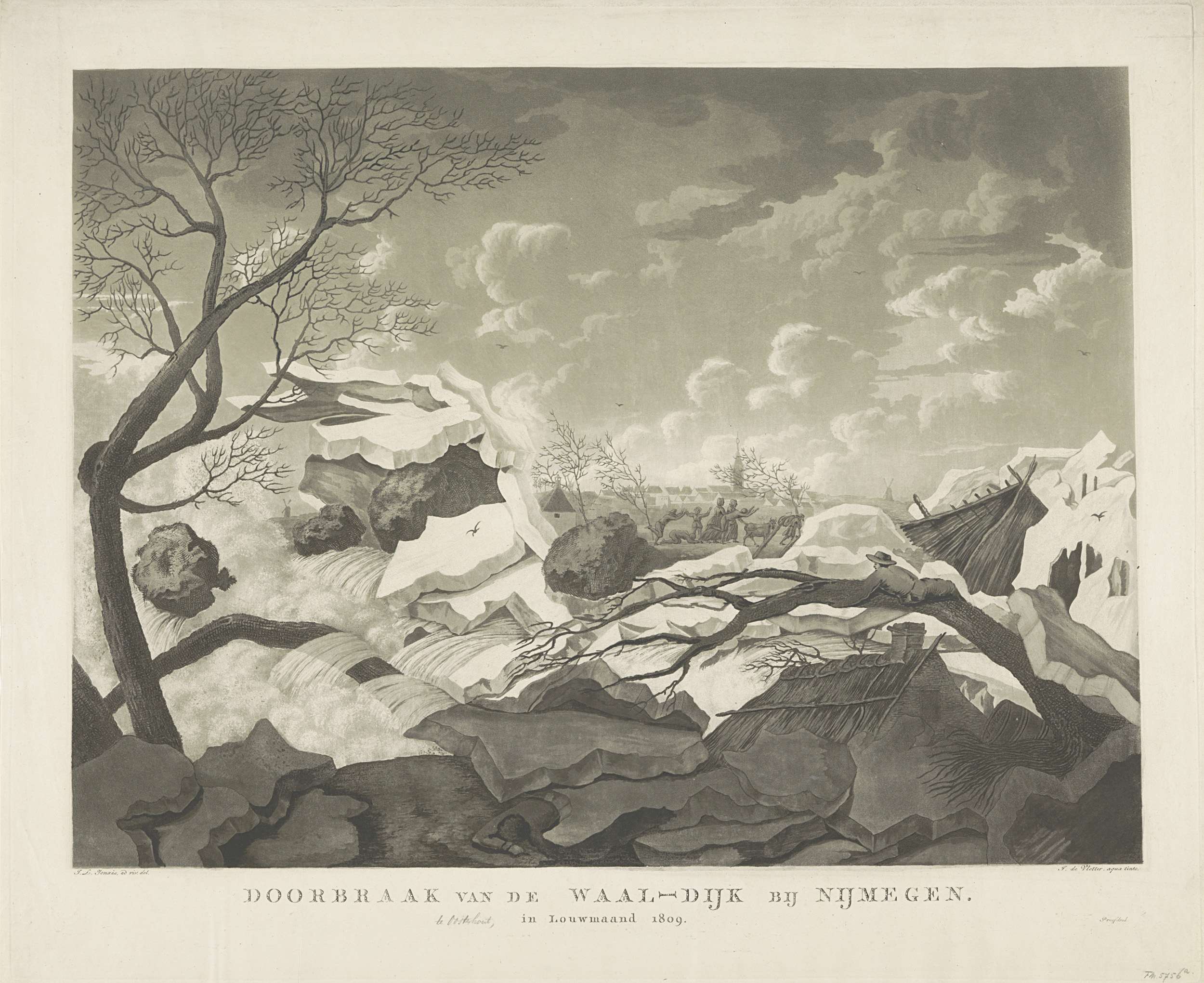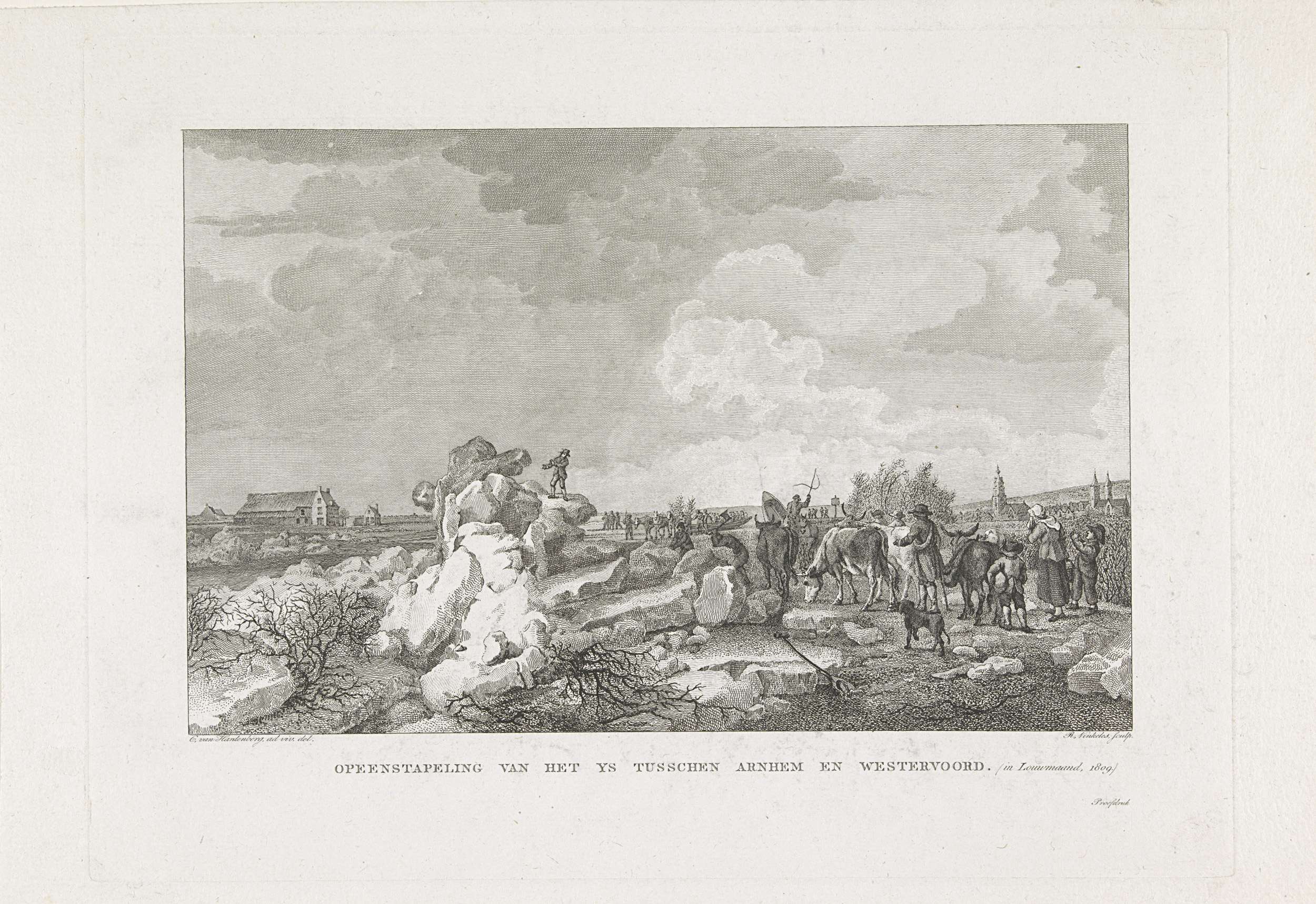 Kruiend ijs tussen Arnhem en Westervoort, 1809