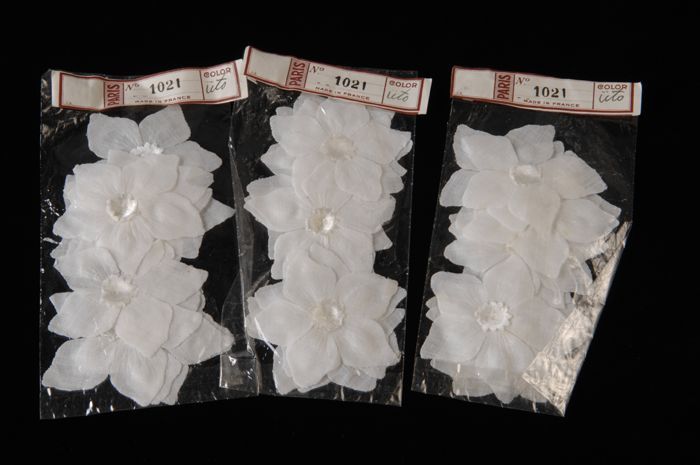 Drie zakjes met vijfbladige bloemen van wit katoen m...