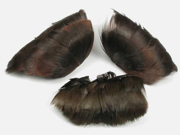 Drie ovale gebogen decoraties van bruine veren op ba...