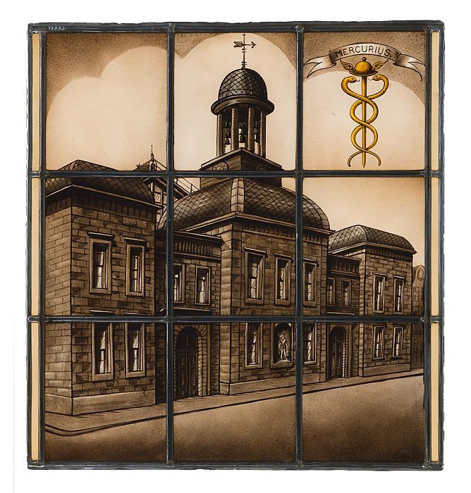 Glas-in-lood met de oude Beurs te Rotterdam