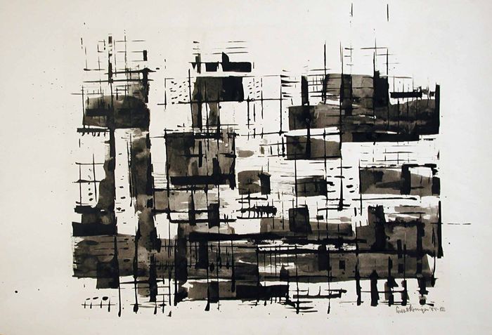 Zwart-wittekening "Stad", bijna abstract patroon van...