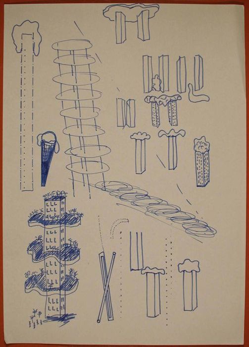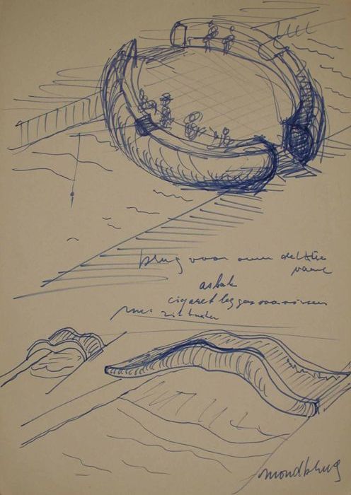 Schetsboektekening met ontwerp voor openbare ruimte,...