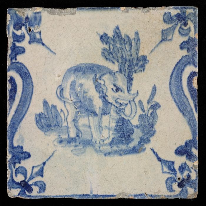 Dierentegel, olifant tussen balusters, hoekmotief fr...