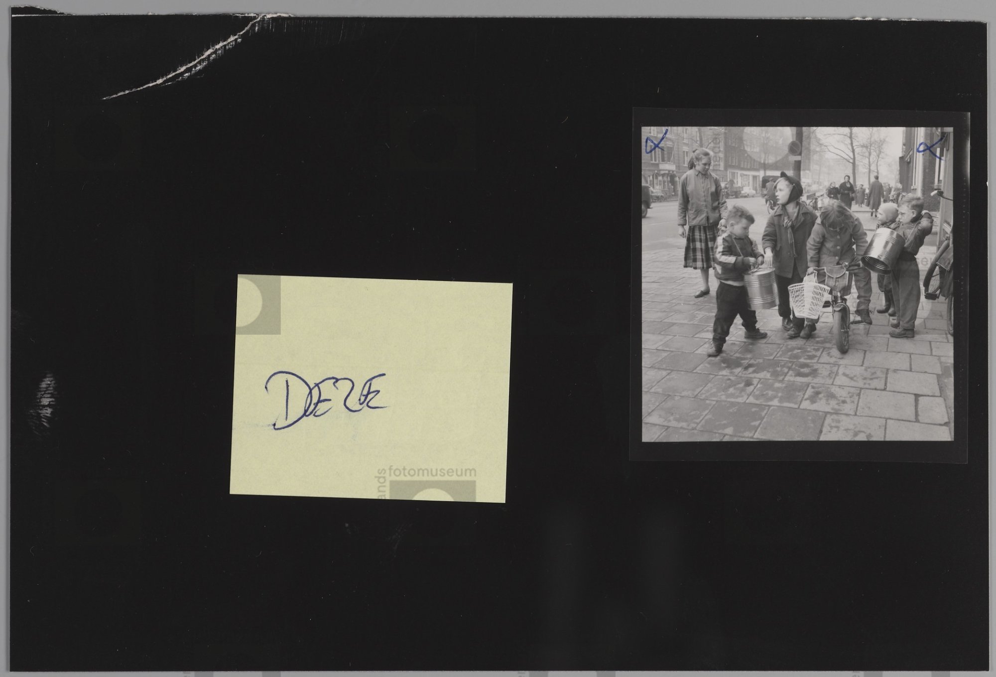 Amsterdam. Kinderen lopen met zelfgemaakte trommels ...