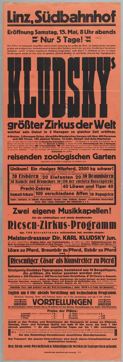 Karl Kludskys grösste Wander-Menagerie und Raubtier-...