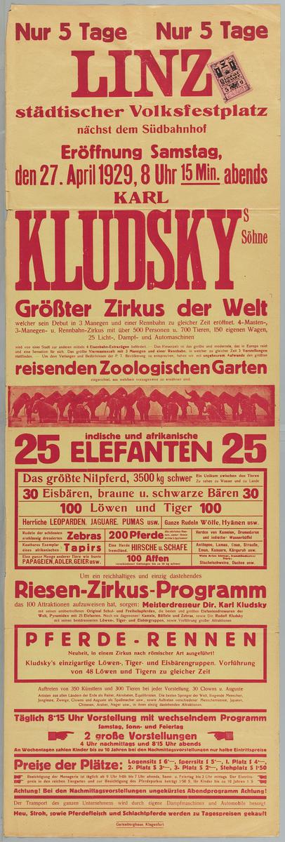 Grand Zirkus A. Kreytel - te Urfahr - met programma