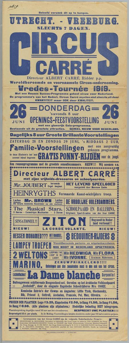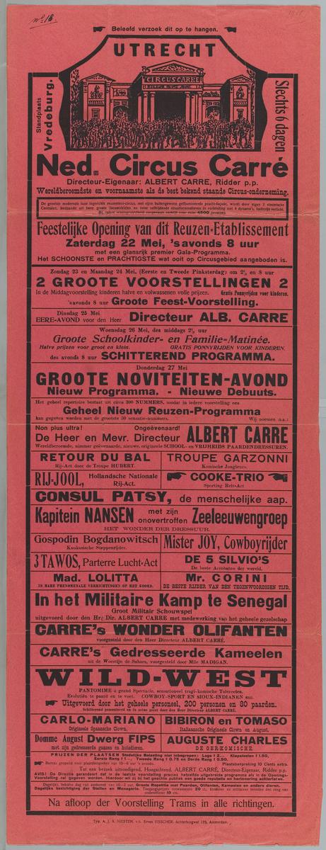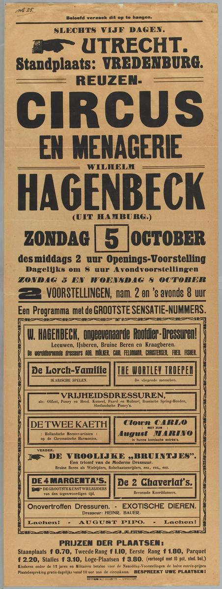 Circus en Menagerie Wilhelm Hagenbeck - te Utrecht -...