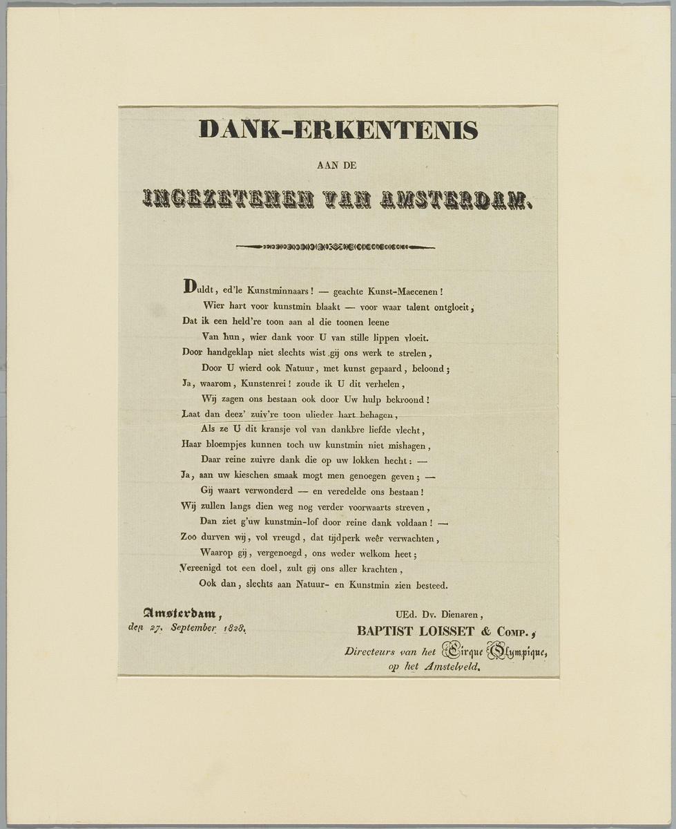 Dank-erkentenis aan de ingezetenen van Amsterdam