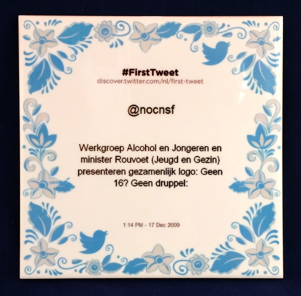 Gedenk wandtegel eerste Tweet NOC*NSF via @nocnsf op...
