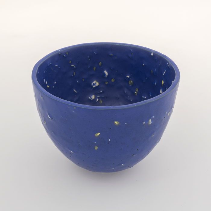 Kom in bloemvorm gemaakt van oude grammofoonplaat, "...
