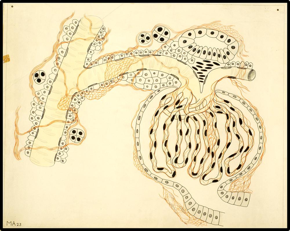 Onderwijsplaat microscopische anatomie van de nier
