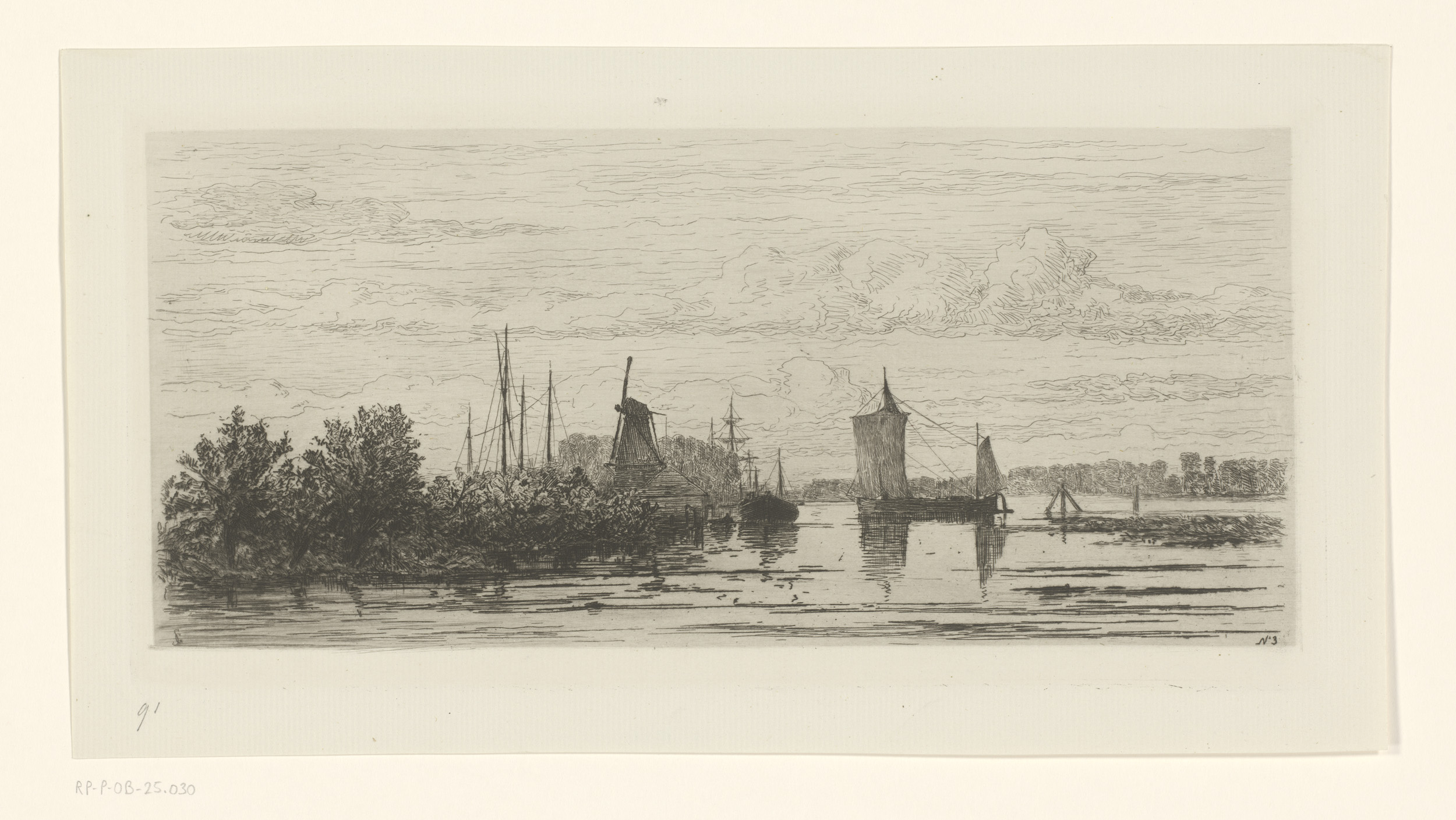 Landschap met molen en zeilschepen bij Dordrecht