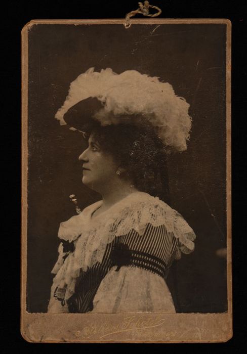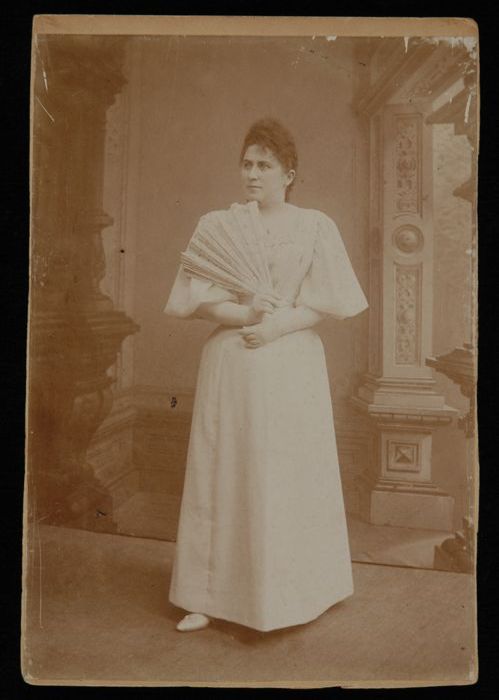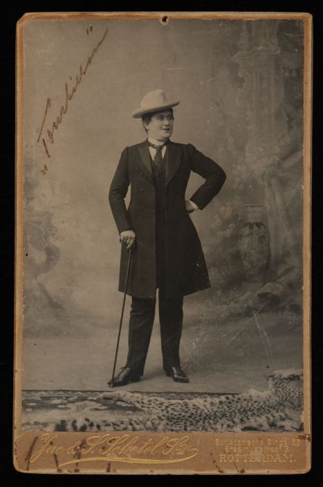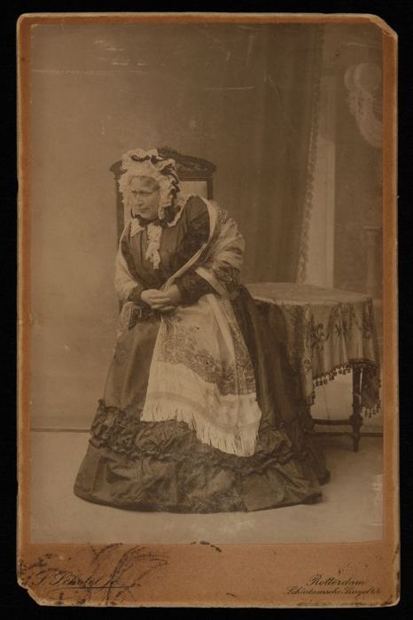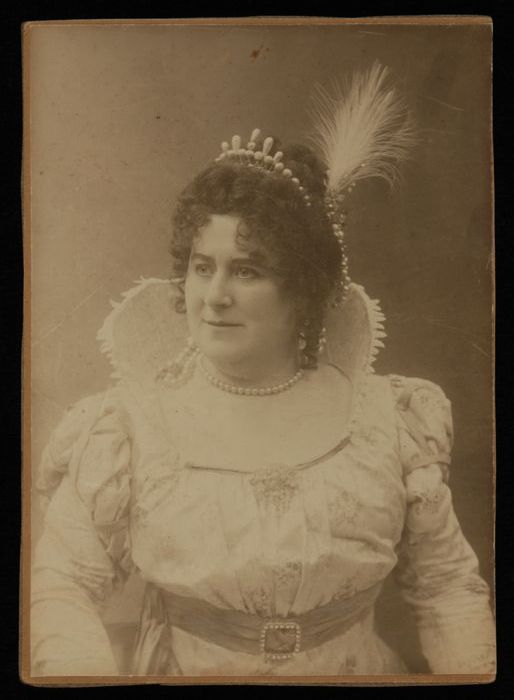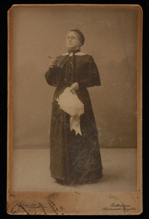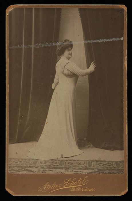 Foto van actrice Marie van Eysden-Vink; staande oude...
