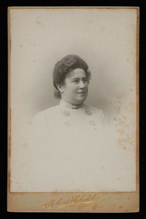 Foto van actrice Marie van Eysden-Vink; borstbeeld dame
