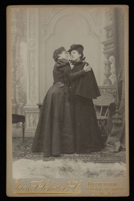 Foto (mode & toneel) van Marie van Eysden: twee dame...