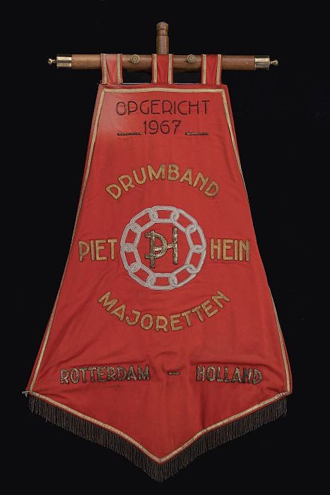 Vaandel met stok, drumband Piet Hein, opgericht 1967...