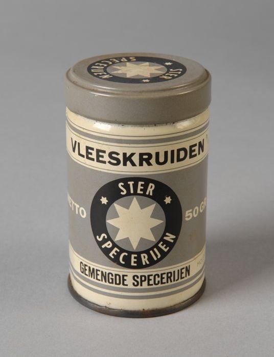 Klein rond blik met draaibaar deksel, Ster vleeskrui...