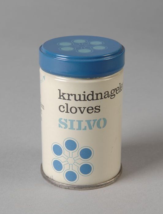 Klein rond blik met draaibaar deksel, Silvo kruidnag...