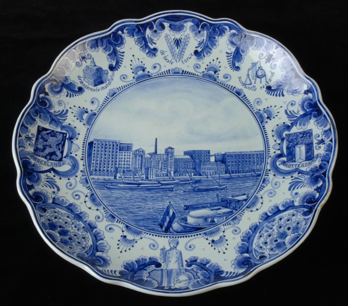 Delfts blauw wandbord met gezicht op de Meneba (voor...