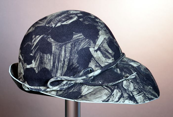 Cloche van crèmekleurig vilt bedrukt met print in zw...