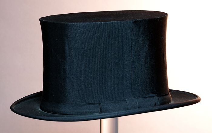 Zwarte hoge herenhoed, chapeau claque, geheel beklee...