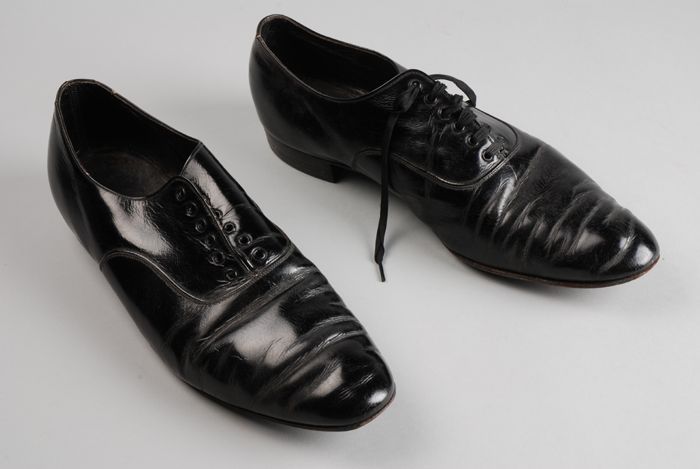 Zwart leren herenschoenen, veterschoenen, twee maal ...