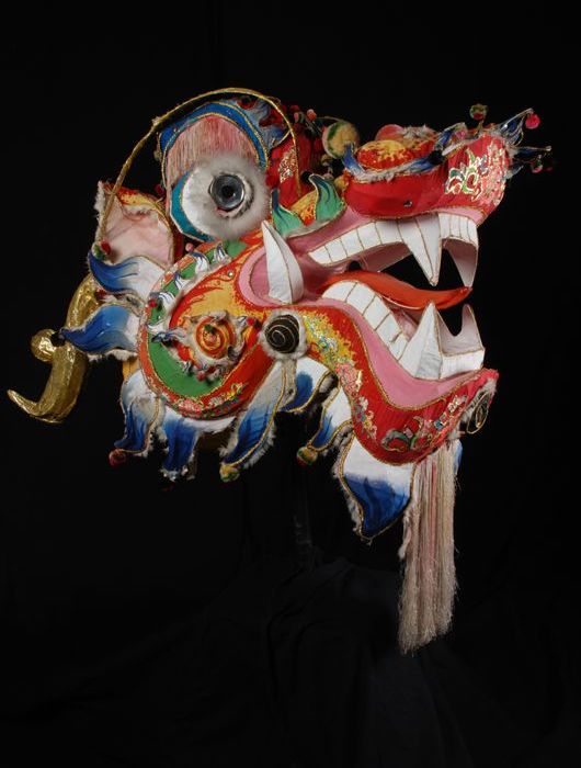 Fantastische kop van een Chinese leeuw, van metaal e...