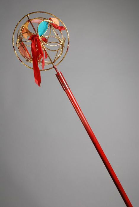 Dresseerbol of 'dancing ball', lange rode stok met e...