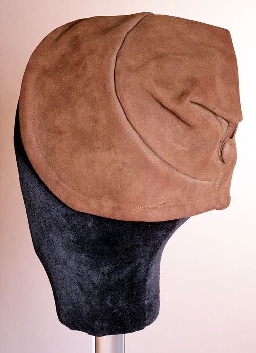 Dopje van bruin suède met asymmetrisch gevouwen flap...