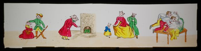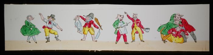 Handbeschilderde lantaarnplaat met aangeklede dieren...