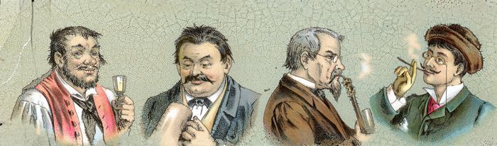 Lantaarnplaat met afbeelding van twee drinkers en tw...
