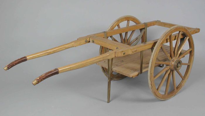 Bokkenwagen met houten wielen en gebronsd ijzeren co...