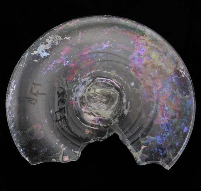 Voet van drinkglas met in de ziel een pontilmerk, he...